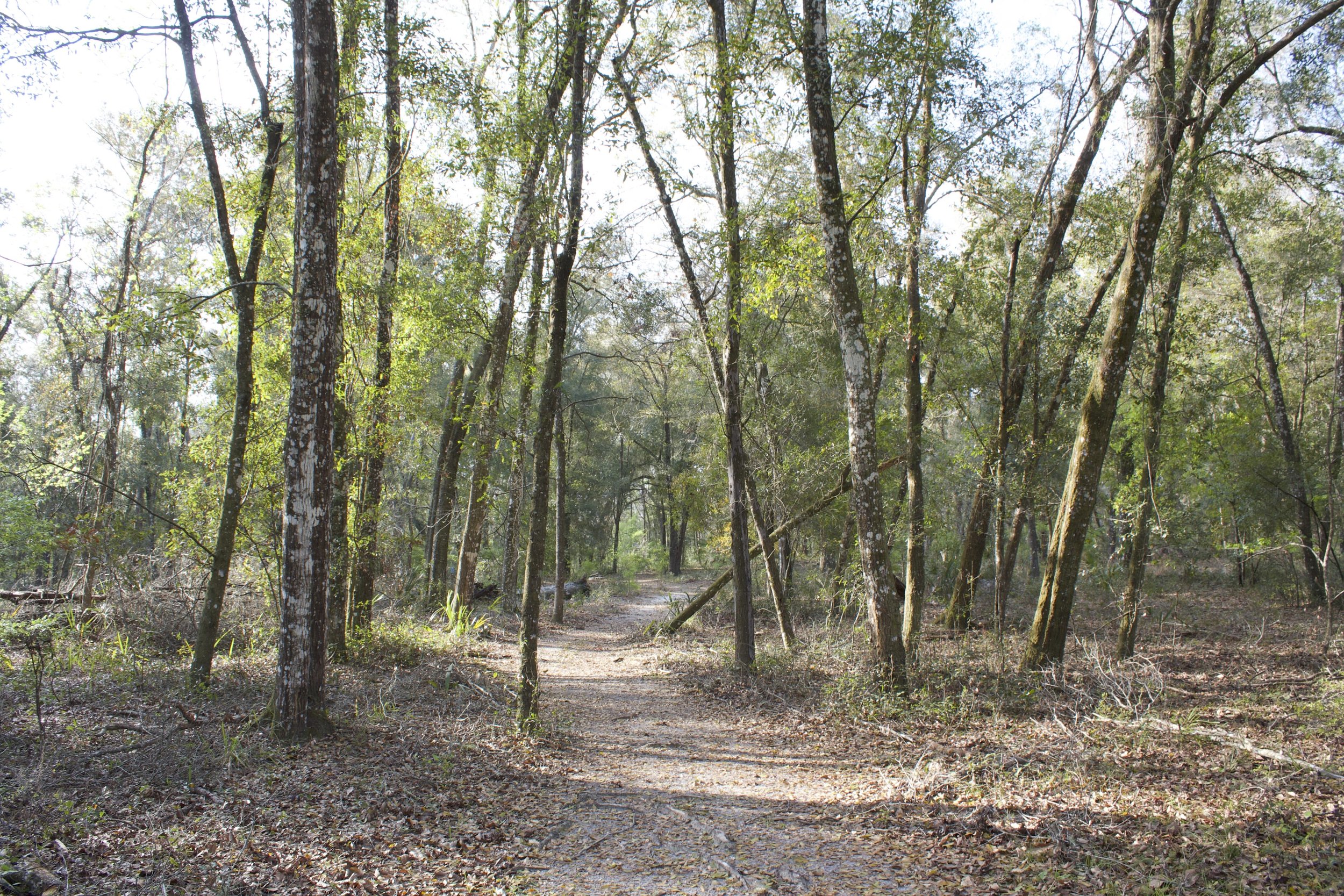 This wooded ecosystem - like many throughout the state - was once clear-cut. This left the land to be dominated by weedy species of trees such as sweetgums, laurel oaks, and water oaks. These trees grow quickly, outcompeting vital hardwood species. Dense, overgrown thickets of stunted oak trees have become common in historically disturbed ecosystems such as this one. As such, select removal of dangerous and unhealthy weedy trees within the wooded ecosystem is necessary to allow for a more biodiverse and sustainable ecosystem to thrive.